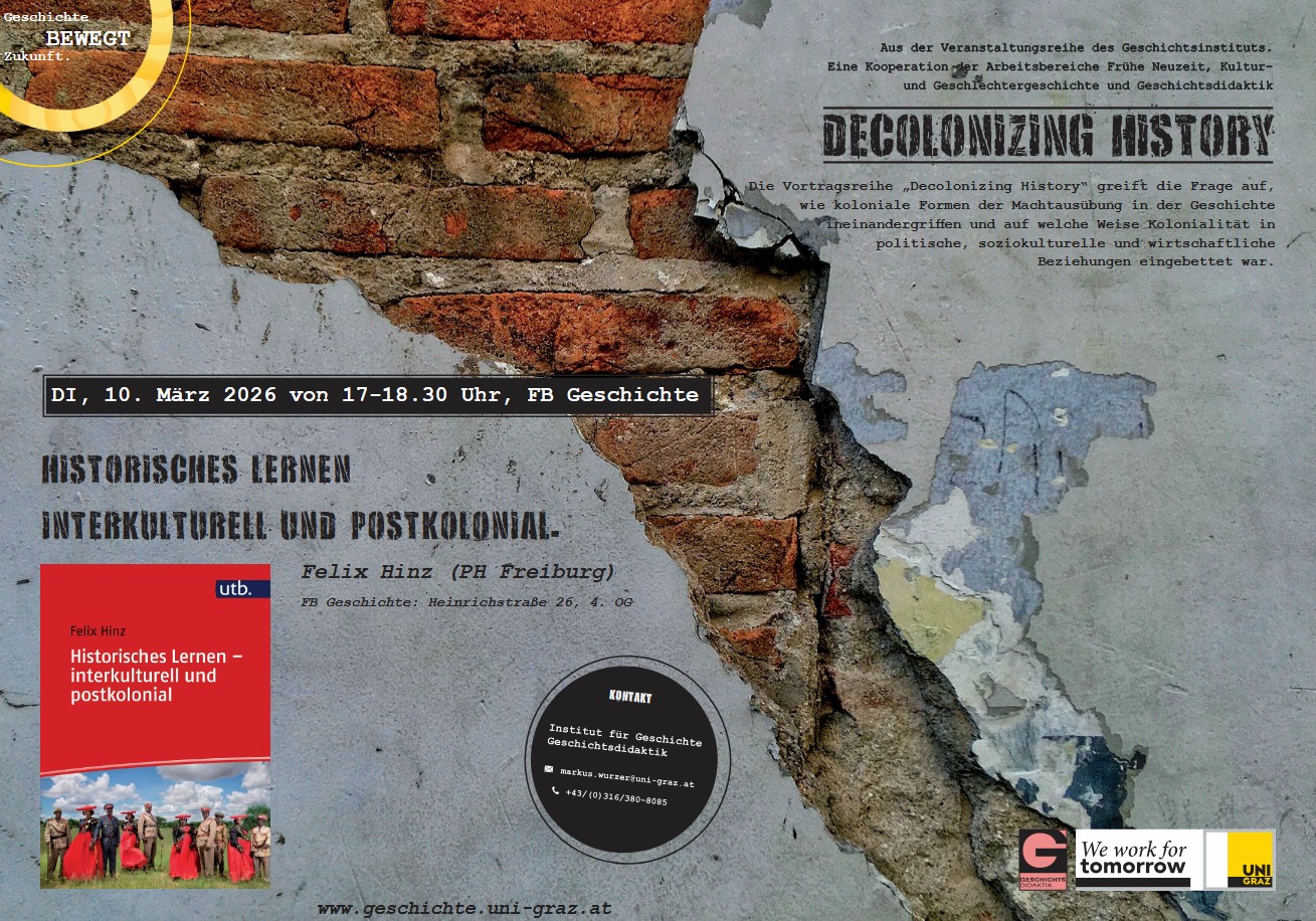 Ziel des Faches ist es längst nicht mehr, einen festen Kanon von „Fakten“- bzw. Ereigniswissen zu lehren, sondern zur Förderung und Entwicklung eines reflektierten Geschichtsbewusstseins beizutragen bzw. Lehrpersonen auszubilden, die dem Ideal des reflective practitioner entsprechen. Angesichts einer durch Verflechtung und Beschleunigung immer unübersichtlicher werdenden und sich auf immer neue Erfordernisse einzustellende Lebenswelt scheint es nicht mehr opportun, bestimmte historische Inhalte als verpflichtende Lerngegenstände zu benennen. Vielmehr kommt es darauf an, durch Einübung historischer Kompetenzen (zunächst in der Rolle der Studierenden, ab der Praktikumsphase jedoch auch verstärkt in der Rolle der Lehrenden) die Fähigkeiten und Bereitschaften zu stärken, sich selbst erfolgreich professionell weiterzubilden und den sich wandelnden Erfordernissen fachlich anpassen zu können. Diese Ziele haben Lehre und Forschung der Abteilung Geschichte stets fest im Blick.