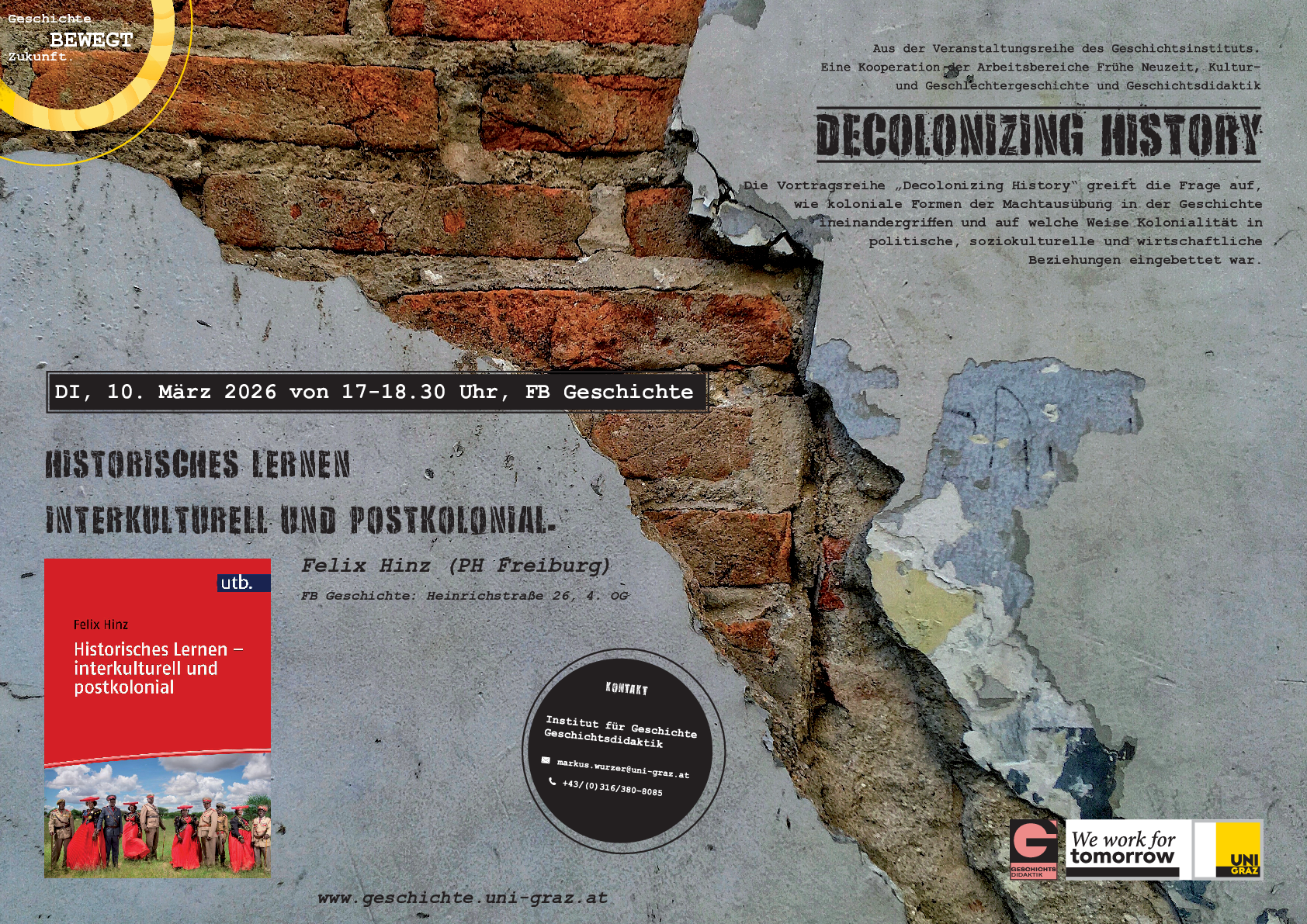 „Historisches Lernen – interkulturell und postkolonial“: Auf Einladung des Geschichtsinstituts der Universität Graz wird Prof. Dr. Felix Hinz sein aktuelles Buch am 10. März in der Reihe „Decolonizing History“ vorstellen.