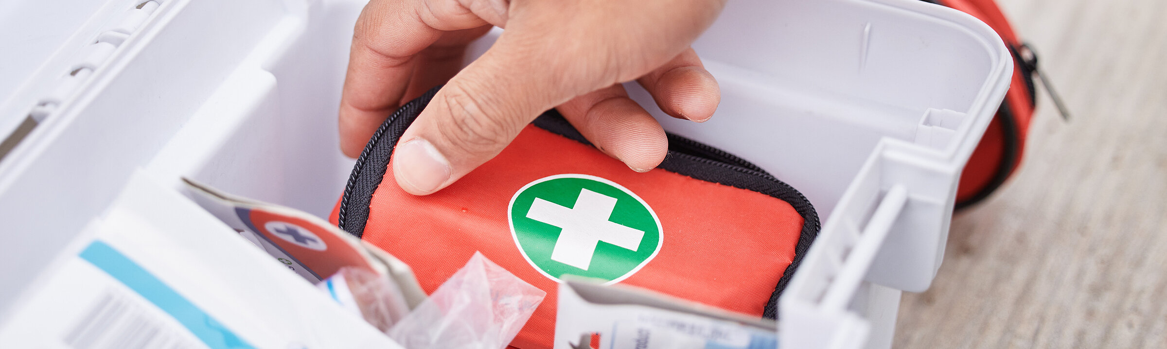 An zahlreichen Standorten befinden sich außerdem Erste-Hilfe-Kästen für die Erstversorgung