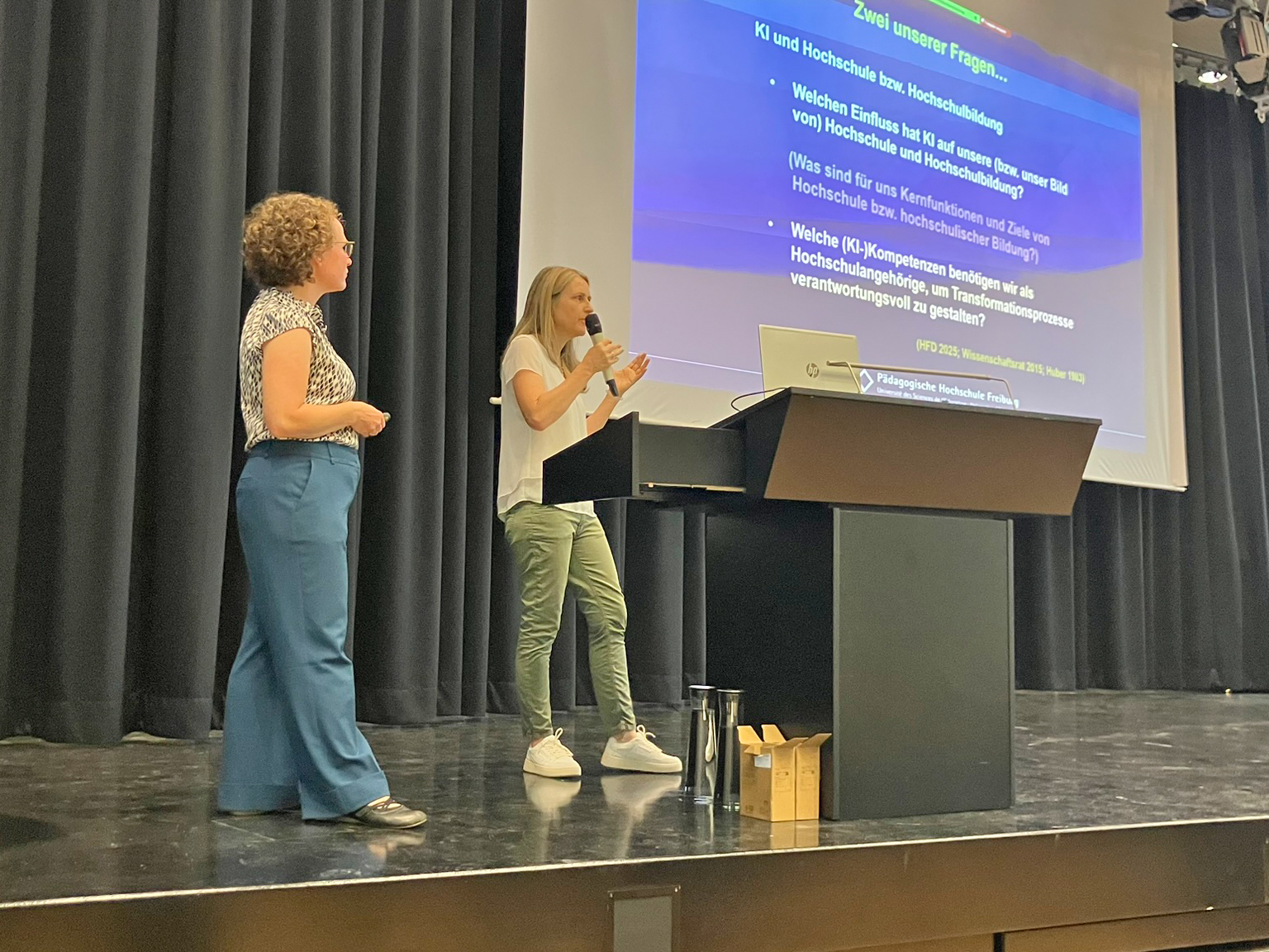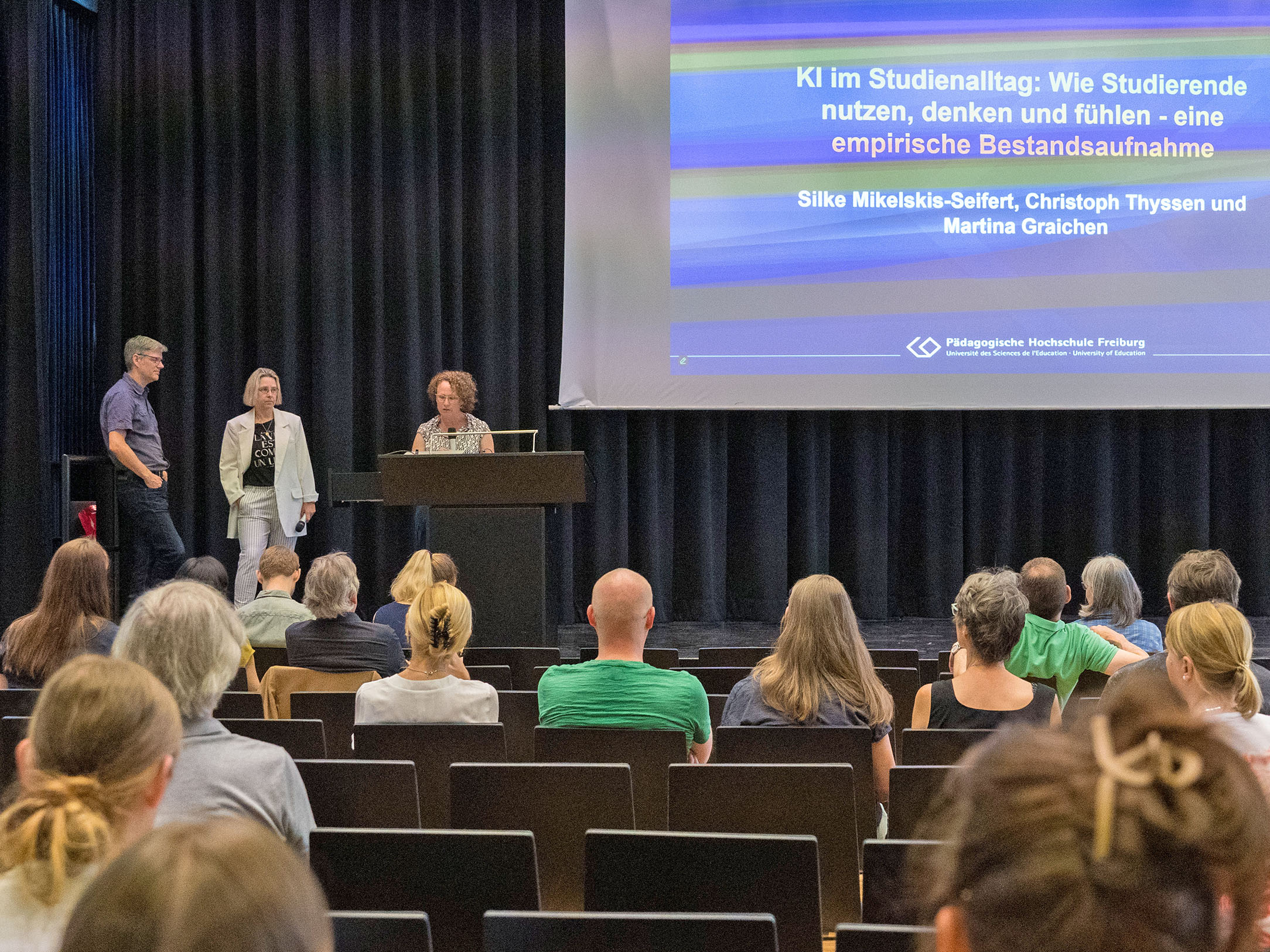 Der Hochschultag KI, der am 23. Juni 2025 an der PH Freiburg stattfand, war mit mehr als 200 Teilnehmenden ein voller Erfolg. Der Tag bot eine Vielzahl verschiedener Formate: Von inspirierenden Impulsen und regen Diskussionen am Vormittag bis hin zu praxisorientierten Workshops am Nachmittag war alles dabei – sowohl vor Ort als auch online. Diese Beiträge sowie die aktive Beteiligung der Teilnehmenden machten den Tag zu einem besonderen Ereignis. Zu den Bildern.