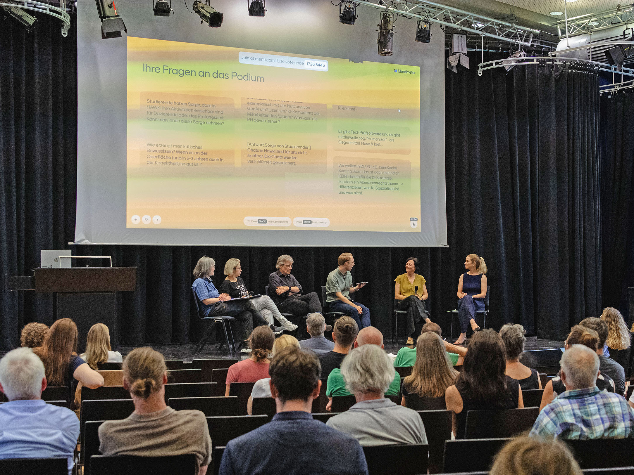 Auf dem Podium treffen Perspektiven aus Lehre, Forschung, Verwaltung, Recht und Wirtschaft aufeinander – ein Gespräch über Chancen, Grenzen und Regeln des KI-Einsatzes. Eine Debatte entlang zentraler Spannungsfelder zwischen pädagogischem Anspruch, ethischer Verantwortung und technischer Machbarkeit – aktuell, kontrovers, richtungsweisend.
