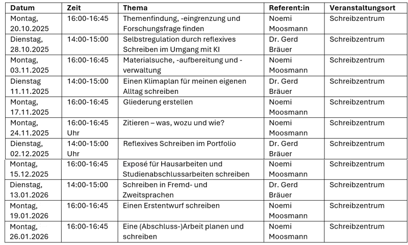 Unser Angebot im Wintersemester 2025/26