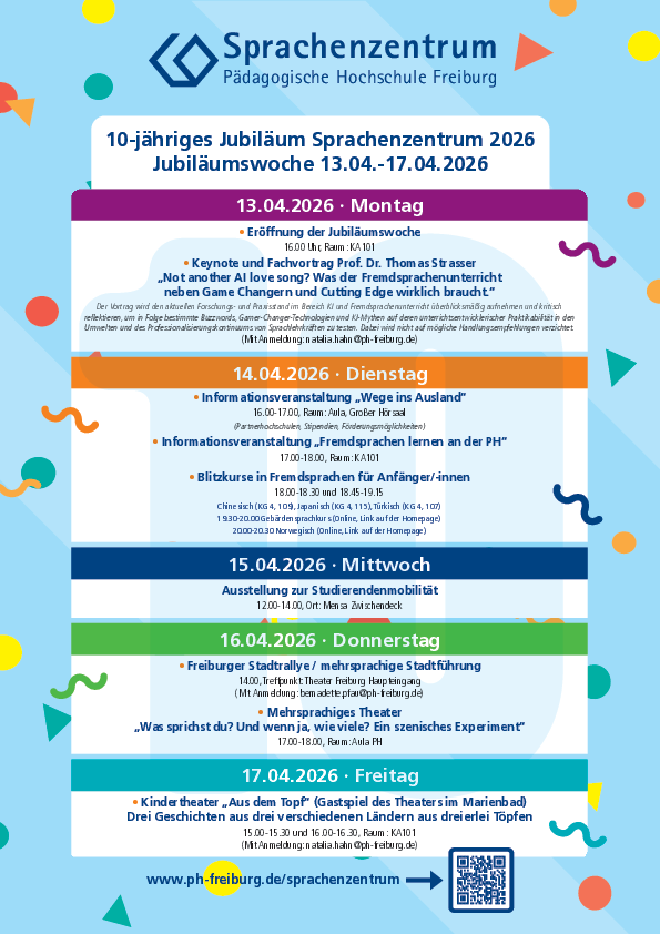 Das Sprachenzentrum feiert in der Beratungswoche 13.04.-17.04.2026 sein 10-jähriges Jubiläum!