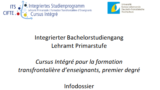 ► Doppelter Abschluss: B.A. Lehramt Primarstufe und Licence d'Allemand Parcours Cursus Intégré (ab 2026/27: Licence Professorat des Ecoles, parcours binational franco-allemand)