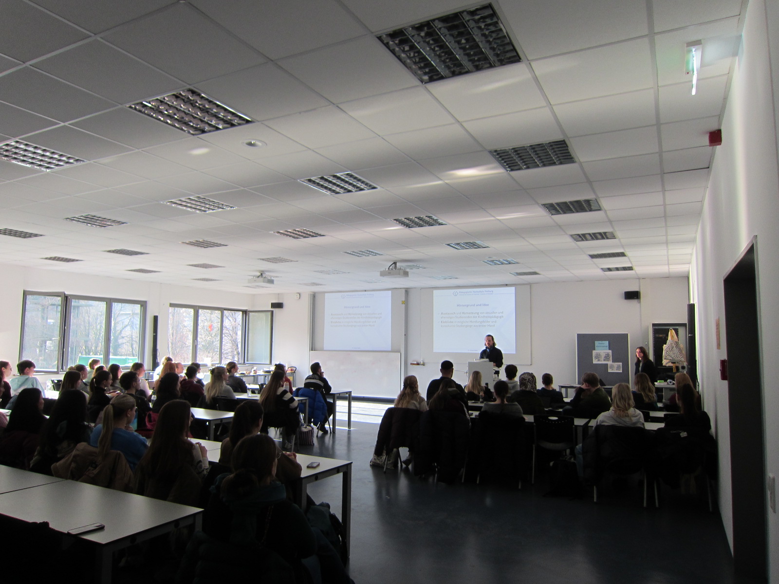 Ein besonderer Fokus lag auf dem Kennenlernen verschiedener Handlungsfelder der Kindheitspädagogik, die von erfahrenen Fachkräften aus der Praxis vorgestellt wurden. Präsentiert wurden die Sozialpädagogische Familienhilfe (Anna Hellmer), die Fachberatung in Sprach-Kitas (Anina Dürmüller Frei), die Sonderpädagogik (Baris Sanli), das Jugendamt (Luzia Baab), Leitungsfunktionen (Benedikt Heizmann) sowie die Schulkindbetreuung (Anna Hahnfeld).