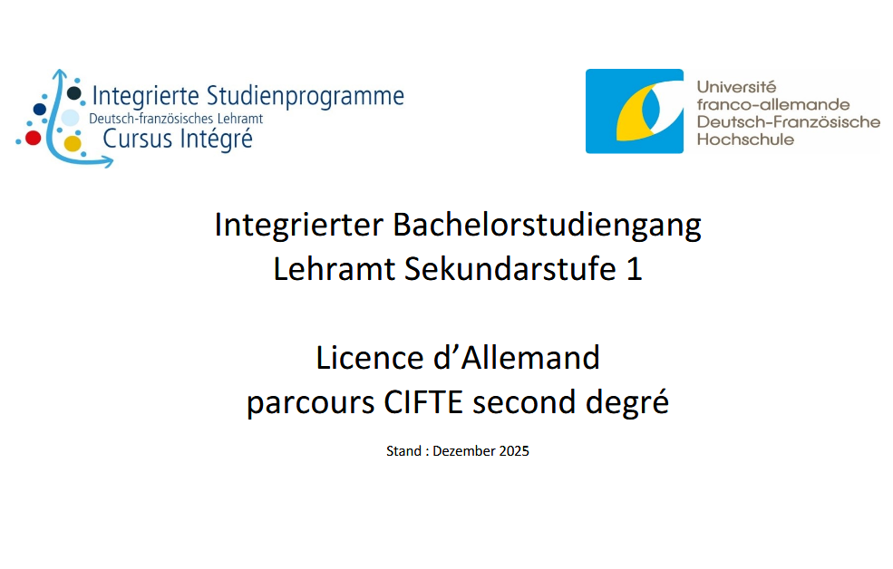 N.B.: Mit Beginn des Studienjahres 2026/27 wird sich auf französischer Seite die Architektur der Lehramtsausbildung grundlegend ändern, ab dem Frühjahr 2026 finden Sie hier die neuen Regelungen.