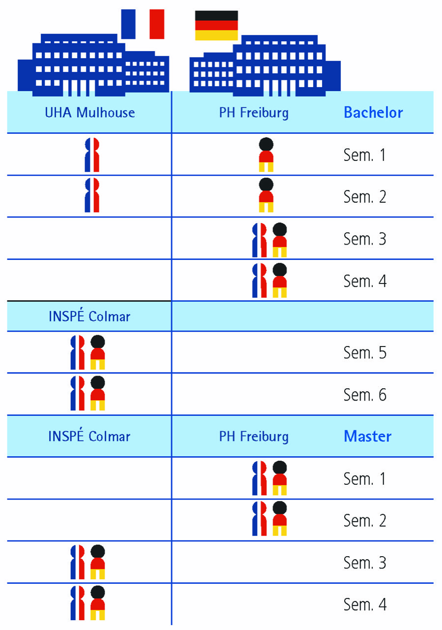 ► Dauer: 4 Semester (Regelstudienzeit), davon Semester 3 und 4 am INSPÉ in Colmar